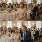 The fork clattered against porcelain. He rose halfway to his feet before he caught himself, instinct forcing him toward attention. The silence at the table was total — shocked faces, champagne flutes forgotten. But this wasn’t the beginning.