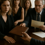 The room tilted. My ears rang. Polite murmurs turned into a suffocating silence that pressed against my chest. I wanted to scream, but before I could, the family lawyer, James Carter, cleared his throat and lifted a sealed envelope.