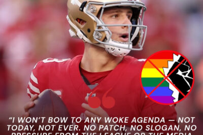 🛑 LATEST NEWS: San Francisco 49ers quarterback Brock Purdy stunned the NFL world when, ahead of a major prime-time game, he flat-out refused to wear a rainbow-themed captain’s patch designed to show solidarity with the LGBTQ community. Instead, Purdy delivered a blunt statement blasting what he called the “woke agenda” and insisted he would never endorse it — a move that instantly divided fans across the Bay Area and the nation.
