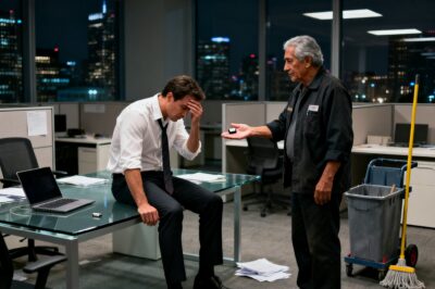 “MY COMPANY IS GONE.” THE BILLIONAIRE LOST EVERYTHING IN ONE DAY—UNTIL A POOR JANITOR WALKED IN AND CHANGED HIS FATE