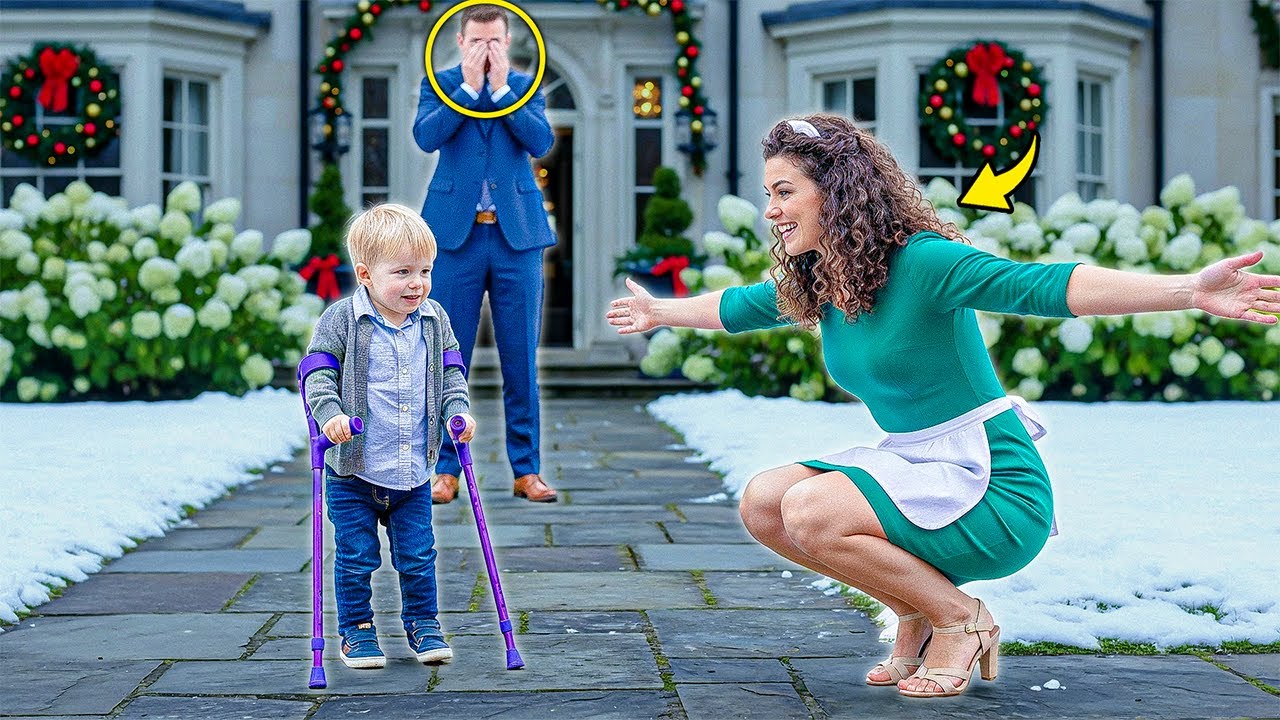 His son, his little Tomás, descended the mansion’s stone steps, using only his purple crutches, step by step, without a wheelchair, without help, walking. “It’s a Christmas miracle!” Sebastián whispered, his voice breaking. On the stone path, Luciana Romero knelt in the snow, her green dress against the white of the ground, her arms outstretched, her face bathed in tears.