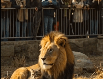 The Zoo Fell Silent When a Tiny Kitten Stumbled Into the Lion’s Cage—Everyone Braced for a Terrifying Attack, But What the King of Beasts Did Next Made the Entire Crowd Gasp in Awe