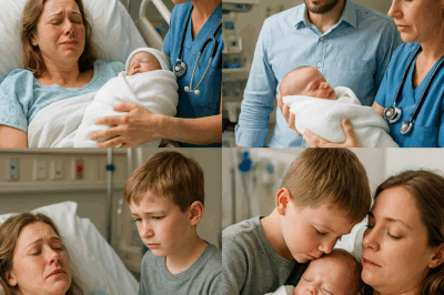 After a pause, Dr. Miller nodded for the nurse to let him in. Ethan walked to the bed, climbed onto the chair beside his mother, and looked down at the baby wrapped in white. His lips quivered. “He’s so small,” he whispered. Then, carefully, he reached out his arms. The nurse hesitated but eventually let him hold the bundle.