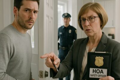 The flashing lights, the whispers, the phones recording behind curtains. And there she was, the queen of HOA, once again being escorted to the back of a police car. This time, she didn’t scream or argue. She just stared at me through the window, pure hatred burning behind those expensive sunglasses. When the car drove off, the officer turned back to me.