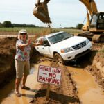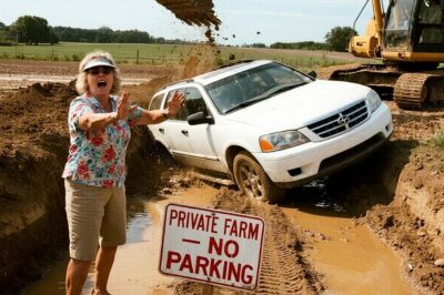 HOA Karen Drove Onto My Farm Without Permission — So I Fired Up My Excavator, Turned the Ground Into a Trap, and Made Her Luxury SUV Sink Straight Into My Pond Like a Screaming Metal Titanic