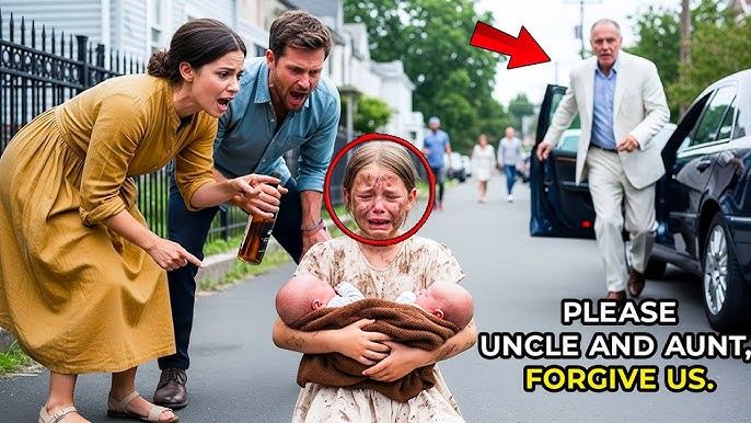 An 8-year-old girl was dragged into the middle of the street by her uncles, who scolded her and threw her out of the house simply because she had added an extra spoonful of milk for her 6-month-old twin brothers, who were burning with fever. The little girl hugged them tightly as her bare feet trembled on the pavement. Suddenly, a luxury car pulled up. A man got out and with a single sentence, changed the fate of the three children forever.