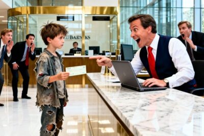 Excuse me, sir. I’d like to check my account balance, please. A black kid in worn out shoes stood at the counter. 10 years old, cracked soles, frayed laces, thrift store jacket swallowing his small frame. The bank manager stopped, looked the boy up and down slowly, then burst out laughing. “Check your account?” His voice echoed across the marble lobby.