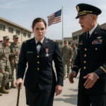He studied her rank, her uniform, the tiny creases that gave away a life lived out of duffels. Then his eyes locked on her face again, weighing something she didn’t offer.