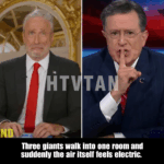 LATE-NIGHT HISTORY IN THE MAKING: Three giants walk into one room—Jon Stewart, Stephen Colbert, and Jimmy Kimmel—and suddenly the air itself feels electric. Whispers say this isn’t just rehearsal, it’s revolution… CH2