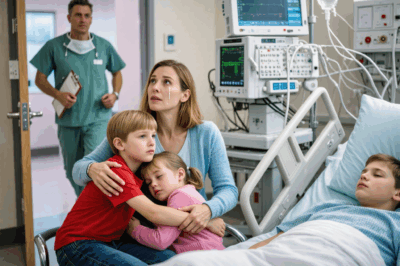 During a family BBQ, my little girl fell from the playground and was rushed to the hospital in a coma. I was holding her hand when my son leaned close and whispered, “Mom… I know what really happened.” My heart stopped. “What did you see?” I asked. He opened his mouth to speak — but before a single word came out, the hospital door burst open…