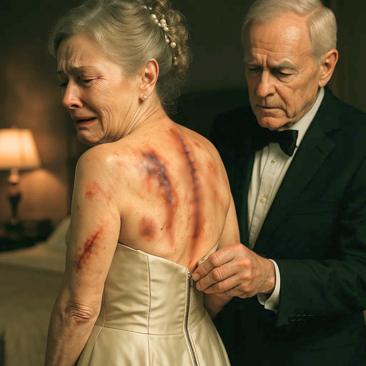 Linda quickly pulled the fabric of the gown back over herself, her shoulders trembling. Her breathing turned short, uneven. I stepped back, not in disgust, but in shock — and in heartbreak so sharp I felt it in my chest.