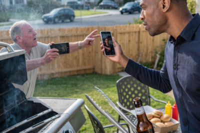 The first thing I noticed was the phone. Not the man holding it. Not the fence line he’d stepped up…