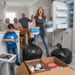 “Bathroom trash,” I said. “Shared space.” The bags hit the floor with a thud. Her hands trembled slightly. “Okay, fine….